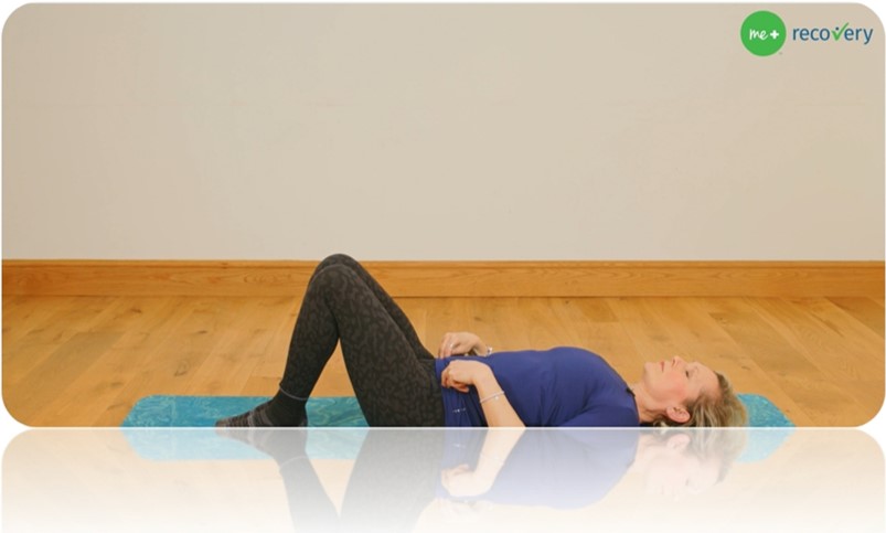 この運動では体幹部奥深くの筋肉の「再連結」を習得します。体幹部奥深くの筋肉を引き締め収縮させ、やさしく内側に引き入れる感覚を目指す運動です。同時に骨盤底もやさしく引き上げます。