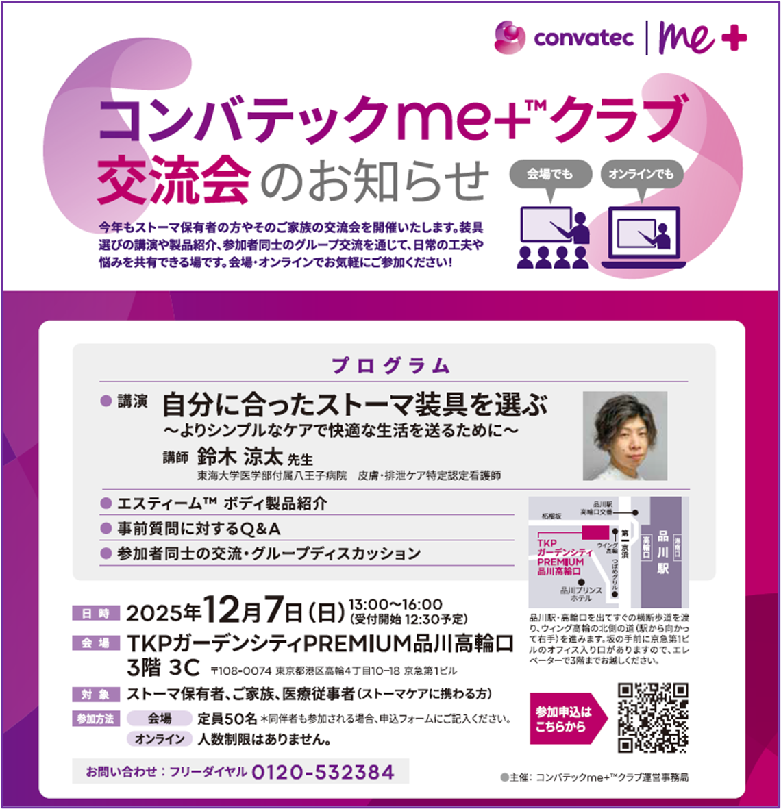 ストーマ保有者同士でディスカッションできる時間を設けておりますので、情報交換の機会にして頂けたらと存じます。