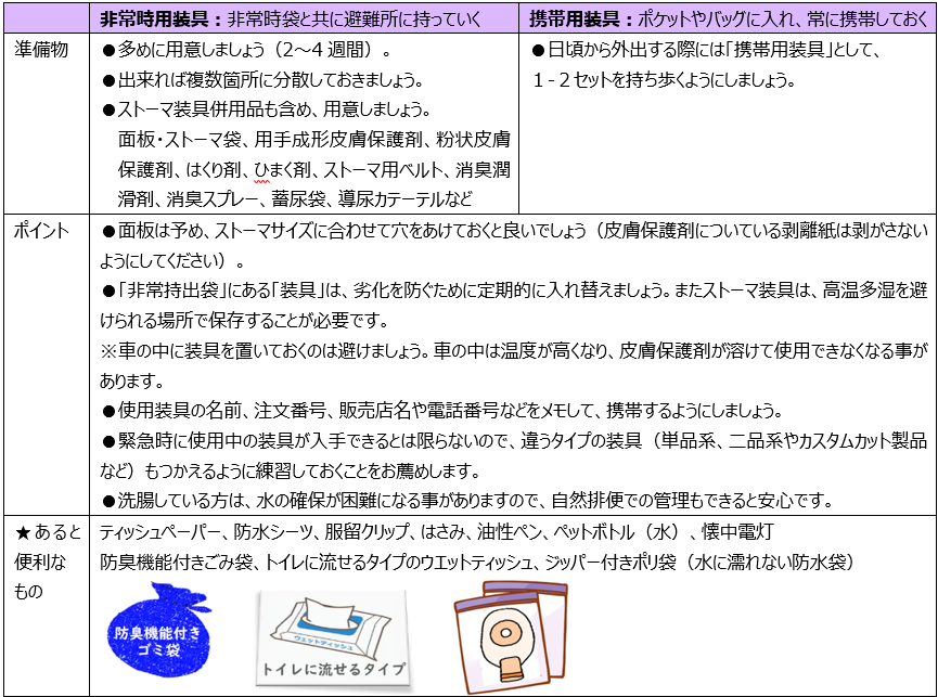 ホームページ:オストメイトの災害対策 | 日本オストミー協会 (joa-net.org) (2024年9月2日付)3)